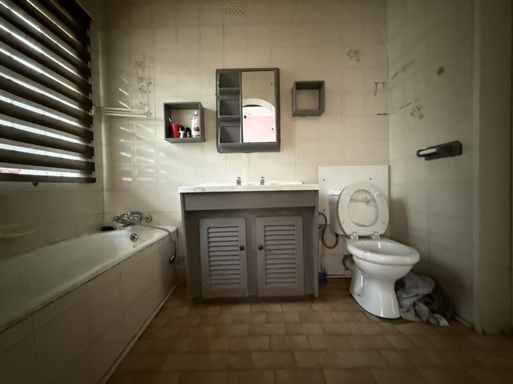 Step inside to discover two spacious bedrooms, each equipped with built-in cupboards that provide ample storage space. The full bathroom is thoughtfully designed with a bath, shower, basin, and toilet, offering both functionality and comfort.