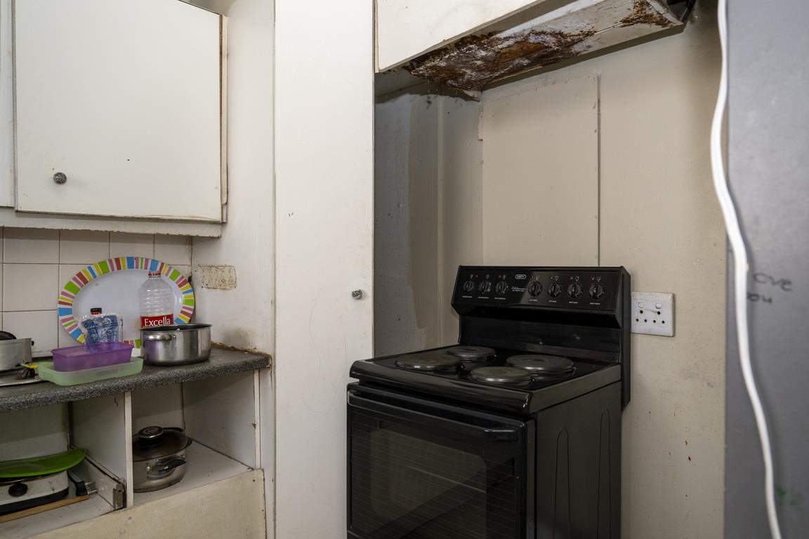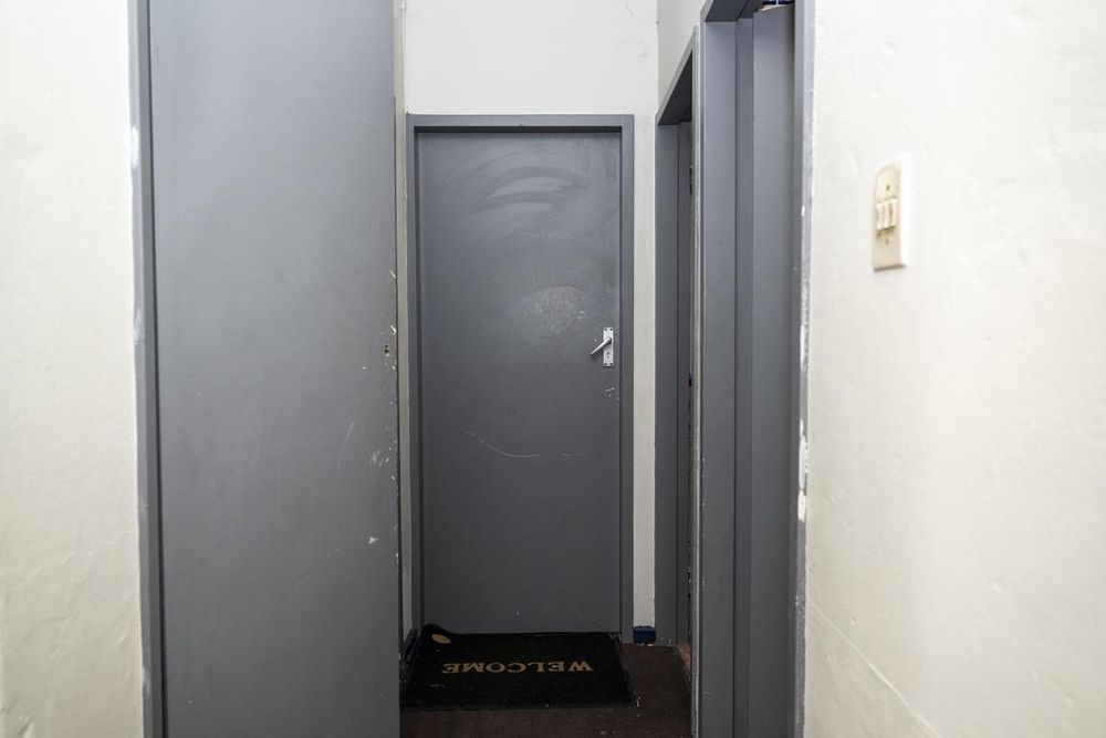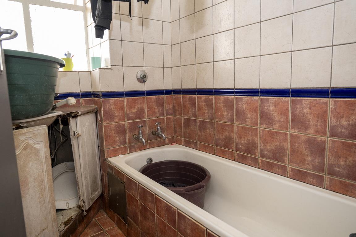 The kitchen comes equipped with built-in cupboards and a stove, both of which are in need of refurbishment. There is also a basin with built-in cupboards underneath, which could benefit from repairs. The bathroom features a bath and basin, and there is a separate toilet for added convenience. Additionally, the property includes a linen closet for extra storage.